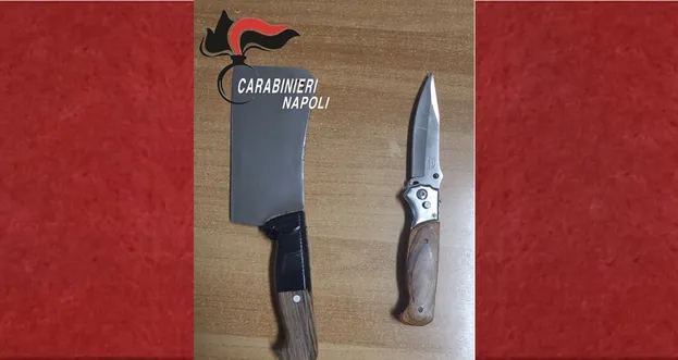 Sono poco più che bambini, hanno 14 e 13 anni e quando vedono i carabinieri tentano di allontanarsi velocemente. I militari fermano i 2 minorenni che vengono perquisiti. Nelle tasche del 14enne un coltello a scatto lungo 22 centimetri ma è il 13enne a sorprendere i carabinieri quando gli trovano addosso una mannaia da cucina lunga complessivamente 27 centimetri.
