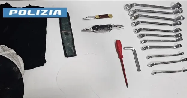 Gli operatori, giunti prontamente sul posto, hanno notato un box con la serranda aperta e la serratura elettrica manomessa con un soggetto al suo interno. Questi, vistosi scoperto, si è dato alla fuga finché non è stato bloccato e trovato in possesso di un coltello con la lama di 17 cm pieghevole, di diversi arnesi atti allo scasso e di un set di chiavi inglesi appena asportato dal box in questione.