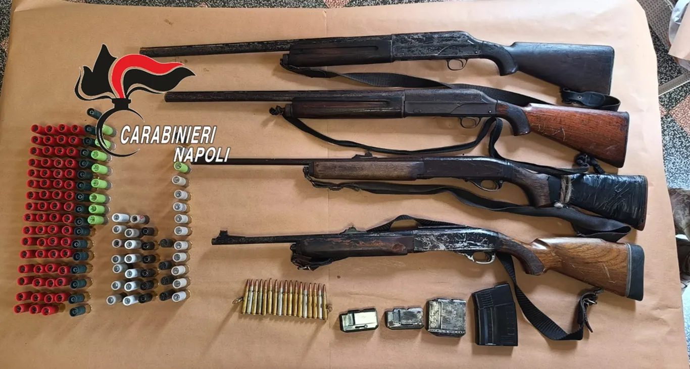 Il secondo ritrovamento, ancora a Lettere ma in località Cauravola, conta nel bilancio due carabine da caccia calibro 30.06 e due fucili semiautomatici calibro 12: tutte le armi, nascoste in un tubo di plastica coperto dalla vegetazione, avevano matricola abrasa. Poco distante, all’interno di un fusto metallico, erano nascosti oltre cento proiettili tra cartucce da caccia a palla, pallettoni e pallini, proiettili calibro 30.06 e quattro serbatoi compatibili con le carabine rinvenute.