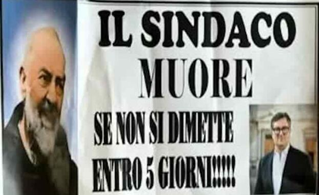 "Il sindaco muore se non si dimette entro cinque giorni". Numerosi manifesti funebri con queste minacce sono stati affissi per le strade di San Giuseppe Vesuviano per intimidire il sindaco Michele Sepe. La comunità locale e la politica del territorio si è stretta intorno al primo cittadino in segno di solidarietà.