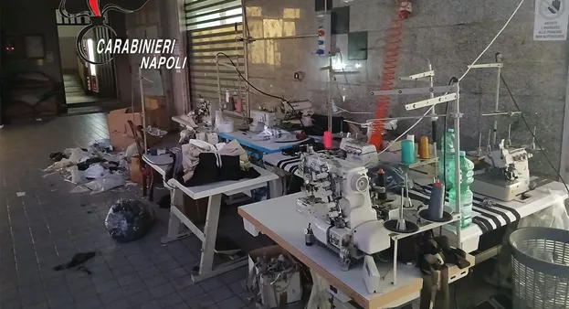I tre piani dello stabile ospitano infatti non solo appartamenti di fortuna, ma anche un opificio tessile completamente abusivo. Ai piani superiori, dove avrebbero dovuto esserci normali abitazioni, i militari trovano invece un vero e proprio dormitorio: 76 operai stipati in stanze fatiscenti, con letti improvvisati, servizi ridotti al minimo, umidità alle pareti e scarsa aerazione. Ambienti pensati per la vita domestica, trasformati in alloggi precari dove i ritmi della quotidianità sono dettati solo dai turni di lavoro. In una delle stanze, persino uno spazio adibito al culto islamico.