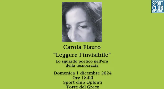 Nuovo appuntamento culturale allo Sport Club Oplonti. Domenica 1 dicembre 2024, alle ore 18.00, Carola Flauto conduce un laboratorio di poesia immersiva: “Leggere l’invisibile – lo sguardo poetico nell’era della tecnocrazia”.