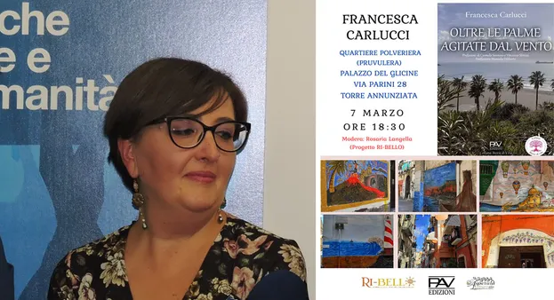 Continuano le presentazioni del nuovo libro della scrittrice oplontina Francesca Carlucci "Oltre le palme agitate dal vento" (PAV Edizioni), ambientato a Torre Annunziata, che affronta le tematiche dei migranti e delle vittime innocenti delle mafie e della criminalità.
