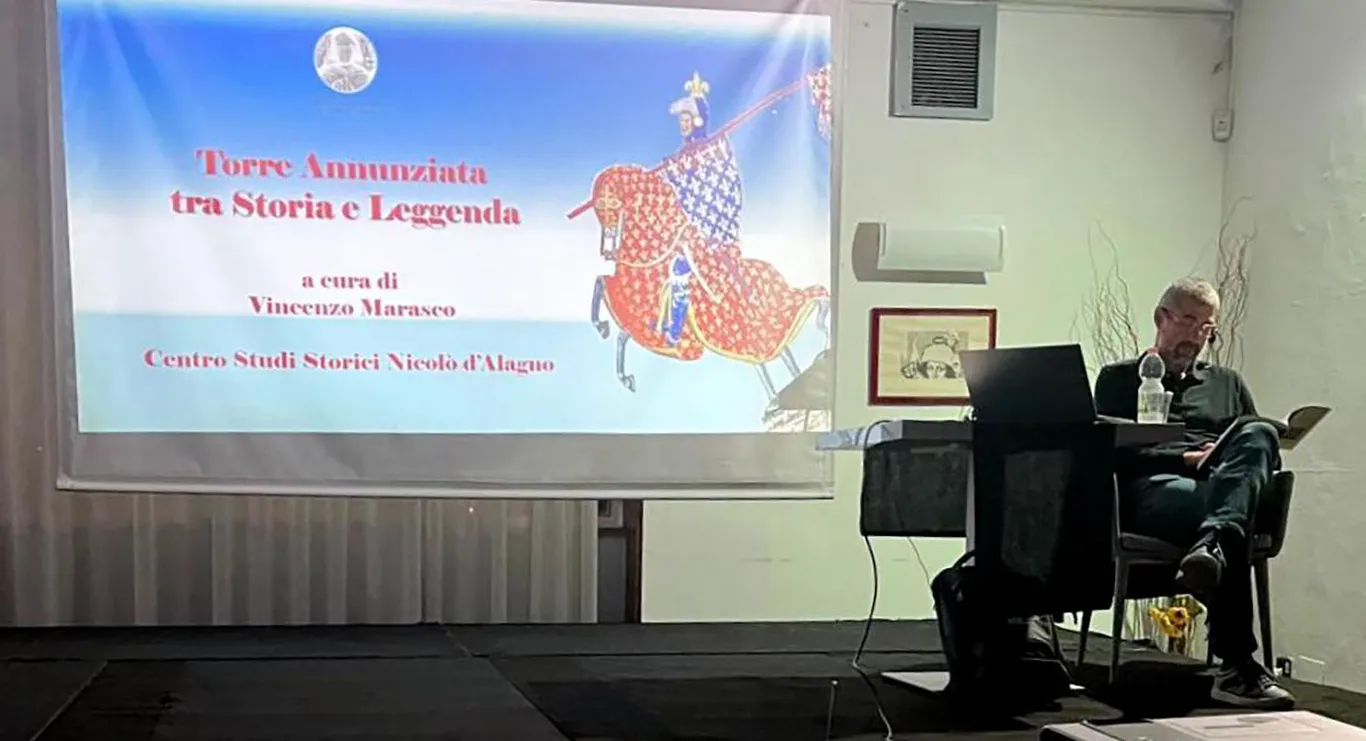 La conferenza “Torre Annunziata tra storia e leggenda”, curata da Vincenzo Marasco, presidente del Centro Studi Storici “Nicolò d’Alagno”, ha permesso ai numerosi soci intervenuti di compiere un viaggio nel tempo lungo ben otto secoli.