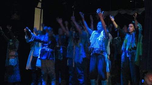 Il foyer della Casa Circondariale di Secondigliano già preannuncia l’esperienza che attende il pubblico: il canto lontano dei gabbiani, la passerella che scricchiola sotto i piedi, l’aria che sembra sospesa. Poi, finalmente, il teatro: nove uomini in scena, nove attori detenuti affiancati dai professionisti della compagnia La Nuova Comune (Deborah Di Francesco, Valentina Coppola, Josepha Pangia, Costanzo Salatiello, Francesco Barra, Alessio Palumbo, Stefano Coppola) e da esperti esterni (Stefania Romagna, Carlo Dini, Francesco Fele).