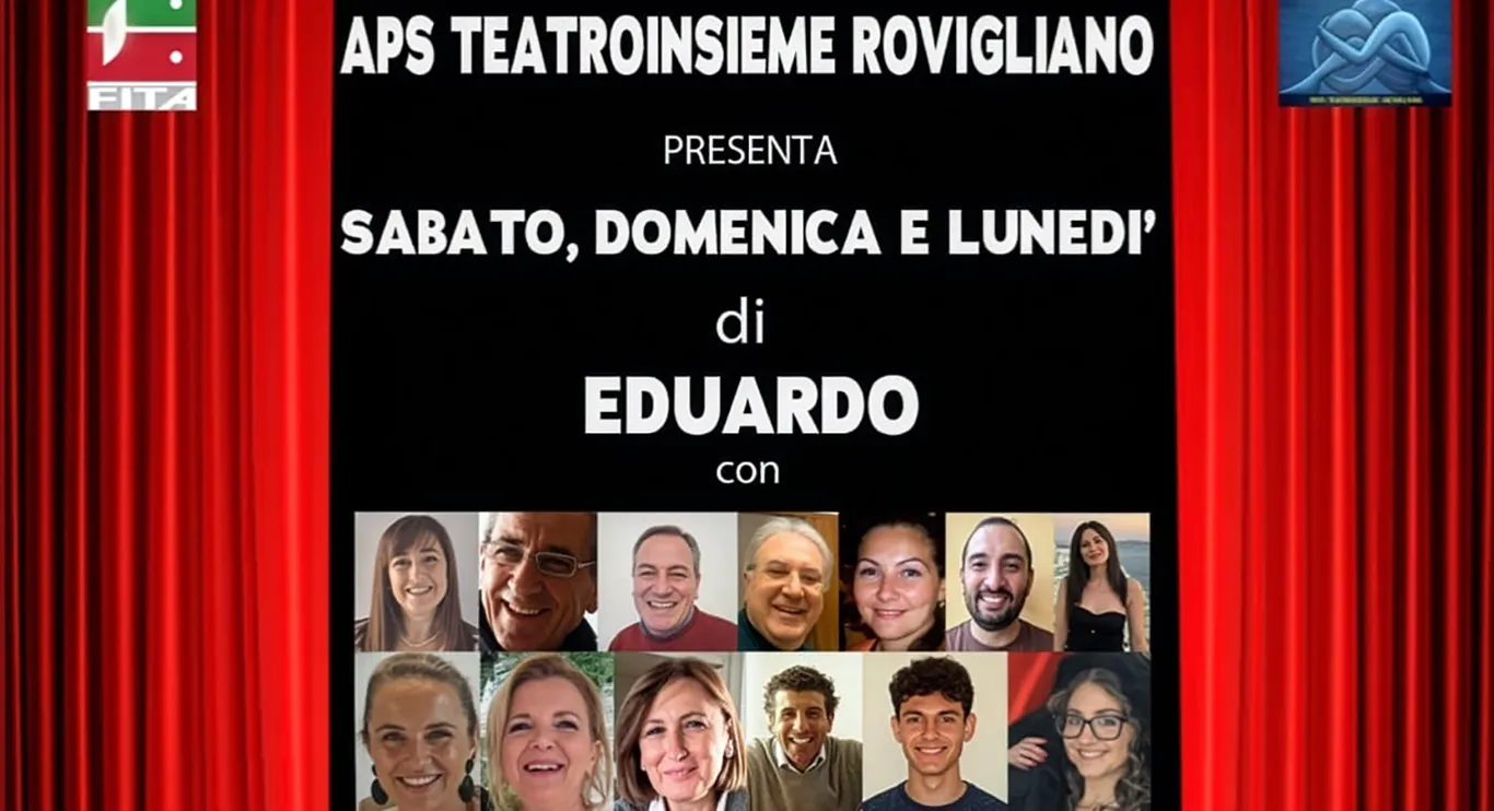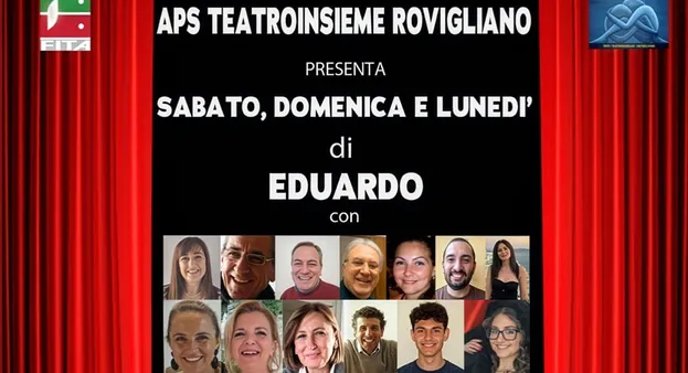 La compagnia di Torre Annunziata “Teatroinsieme Rovigliano” torna in scena con una delle commedie più significative di Eduardo De Filippo, “Sabato, domenica e lunedì”. Due le repliche in programma al Teatro “Di Costanzo-Mattiello” di Pompei: sabato 14 febbraio ore 20.00 e domenica 15 febbraio ore 18.00.
