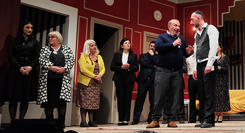 E a proposito di attori in scena, occorre sottolineare ancora una volta l’applicazione della formula “Teatro, amicizia, rispetto” che Vincenzo Genovese promuove da diverso tempo per affermare un’idea di condivisione nell’ambito dell’attività teatrale. Infatti, anche ieri sera il palcoscenico del teatro della città mariana ha fatto registrare la presenza di due attori partenopei, Salvatore Orga e Roberta Grandelli, componenti della compagnia “Vana Imago” di Fuorigrotta. Una meritoria rete operativa tra associazioni e team amatoriali, esempio di autentica promozione culturale priva di barriere campanilistiche e concettuali.