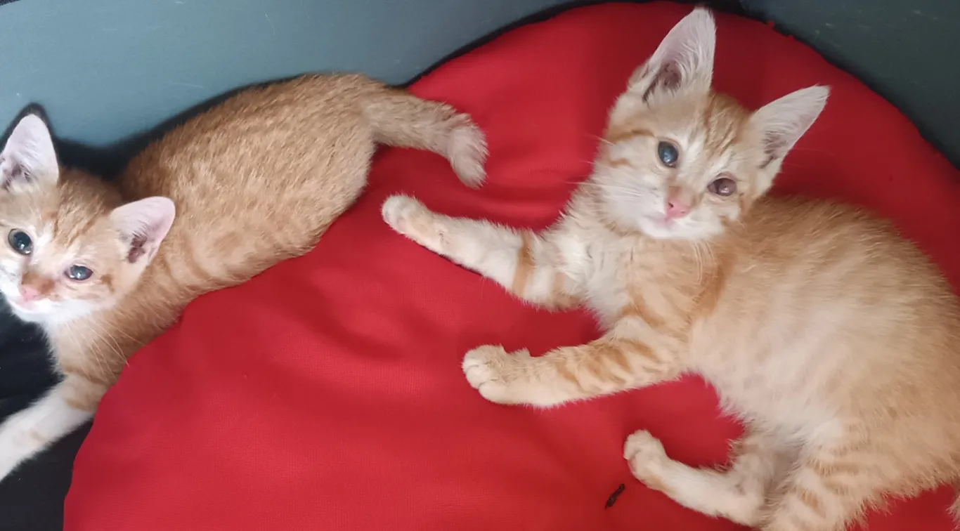 Due gattini di circa due mesi cercano una famiglia amorevole che li accolga insieme preferibilmente. Pepe, con le zampette bianche, e Carletto, tutto arancione, sono stati raccolti con gli occhi completamente chiusi. Pepe è guarito e ha due splendidi occhietti. Carletto sta migliorando gradualmente e la cosa importante è che vede. Sono amabili... Sarebbe meravigliosa un' adozione di coppia. Carletto è stato meno fortunato ma è davvero bellissimo e merita pure lui una famiglia. Sono stati spulciati e sverminati. Sì trovano in provincia di Napoli. Per info, contattare il 3342034359