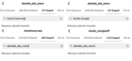 Sì, perché in Sardegna, insieme ad Oriana e Daniele, c’erano anche Micol Incorvaia, Giaele De Donà e Nicole Murgia. Nel video della discussione tra gli Oriele, diventato virale, si vedono la fidanzata di Edoardo Tavassi e la moglie di Bradford Beck sedute al loro stesso tavolo, e la loro espressione, ovviamente, tradisce un evidente imbarazzo. E’ ipotizzabile che Dal Moro abbia litigato anche con due delle tre “ragazze del van”, oltre che con la fidanzata (o ex fidanzata). Infatti, l’ex tronista ha smesso di seguire su Instagram Micol e Nicole, e queste ultime hanno fatto lo stesso con lui.