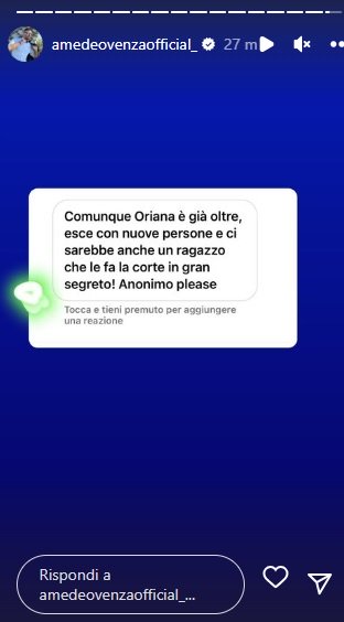 Nel frattempo, Oriana Marzoli sembra avere tutta l’intenzione di voltare pagina. La finalista della settima edizione del Grande Fratello Vip, dopo aver trascorso alcuni giorni a Verona a casa di Daniele Dal Moro, si è definitivamente trasferita nel suo nuovo appartamento di Milano che ha di recente preso in affitto. Ma non è l’unica novità che riguarda l’ex vippona. Infatti, stando ad una segnalazione pervenuta ad Amedeo Venza, ci sarebbe un ragazzo che le starebbe facendo la corte in “gran segreto”: “Oriana è già oltre, esce con nuove persone e ci sarebbe anche un ragazzo che le fa la corte in gran segreto”.