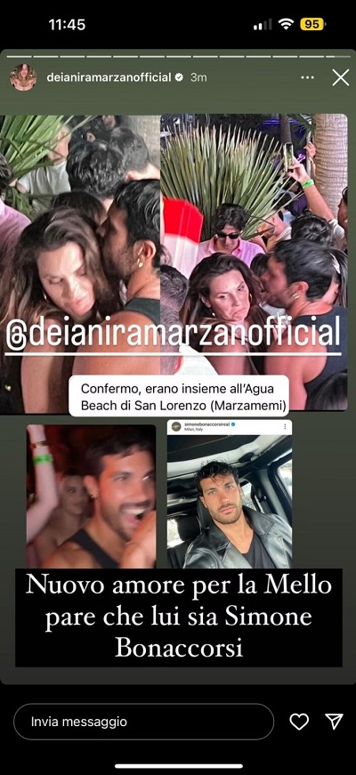 Ieri, però, Dayane è stata beccata in compagnia di Simone Bonaccorsi, che partecipò insieme all’allora fidanzata Chiara Esposito, una delle professoresse de L’Eredità, alla seconda edizione di Temptation Island Vip. La segnalazione è arrivata in direct a Deianira Marzano: “Erano insieme all’Aqua Beach di San Lorenzo (Marzamemi)”.