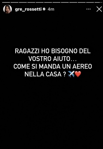 Ma come avrà preso il confronto Greta Rossetti? Stranamente molto bene a quanto pare. Infatti l’ex tentatrice ha ricondiviso nelle storie Instagram dei messaggi in direct in cui degli utenti le scrivevano cosa stesse dicendo in diretta Mirko, dedicando al ragazzo un messaggio ricco di affetto e sostegno: "Stai tranquillo amore, sono felice se sei felice. Vorrei solo abbracciarti forte e dirti che sei un uomo con la U maiuscola e stasera l’hai dimostrato a tutti. Sono fiera di te. Spero che ti arrivino questi messaggi anche solo con il pensiero. Ti amo e ti sosterrò finché vorrai". Poche ore fa, inoltre, Greta si è rivolta ai suoi followers su Instagram per farsi aiutare a mandare un aereo per Mirko: “Ragazzi, ho bisogno del vostro aiuto… Come si manda un aereo nella Casa?”.