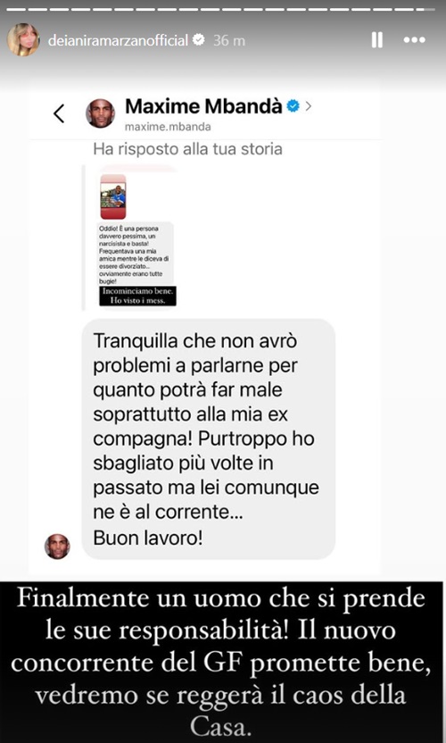 Poche ore prima di fare il suo ingresso nella Casa più spiata d’Italia, Maxime ha salutato i suoi follower attraverso una storia su Instagram: “Vi prometto di rimanere me stesso nella buona e nella cattiva sorte. Da ora sono letteralmente nelle vostre mani”.