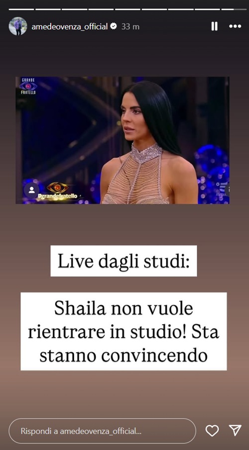 Nel frattempo, stando a quanto rivelato da Amedeo Venza, Shaila Gatta si sarebbe rifiutata di entrare in studio e starebbero facendo di tutto per convinverla.