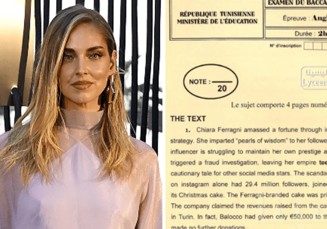 I temi, che ruotano attorno al crollo dell'immagine pubblica di Chiara Ferragni, sono stati riassunti in un articolo del 'The Guardian', risalente al 13 gennaio del 2024. La vicenda è al centro di una prova della sezione Economia, proposta in lingua inglese, dal ministero tunisino dell'Educazione all'esame di maturità. A riportare la notizia è la pagina Facebook tunisina 'Lyceena', specializzata in tematiche scolastiche, che ha diffuso la traccia.