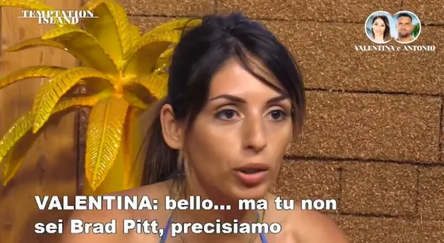 Temptation Island 2025, si parte. Da questa sera, giovedì 3 luglio, in prima serata su Canale 5, al via la nuova edizione del programma che si sviluppa con le storie di sette coppie in un resort in Calabria, in provincia di Catanzaro. Filippo Bisciglia racconterà le storie e i sentimenti di sette coppie non sposate e senza figli in comune, pronte a mettersi in gioco per decidere se portare avanti il rapporto o interromperlo. Poco fa, sui canali social del programma è stato pubblicato un primo spoiler della prima puntata nel quale si vede Valentina, fidanzata di Antonio, esclamare: “Bello, ma tu non sei Brad Pitt, precisiamo…”.