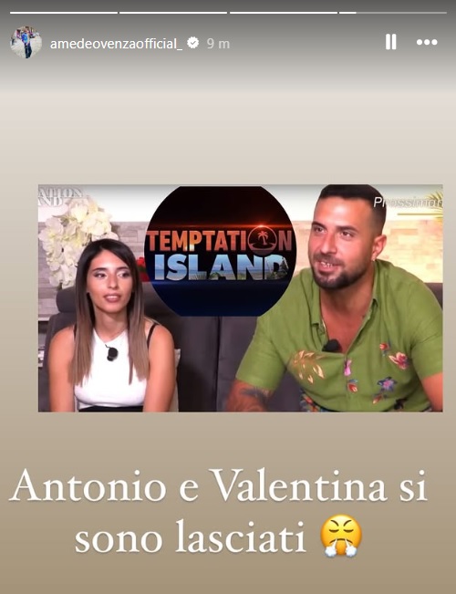 Di opinione opposta è Amedeo Venza, altro noto volto del gossip online. Sempre tramite Instagram, ha scritto senza mezzi termini: “Antonio e Valentina si sono lasciati”. Secondo le sue fonti, la storia d’amore tra i due sarebbe giunta definitivamente al capolinea, forse proprio a causa di quanto accaduto nel villaggio delle tentazioni.