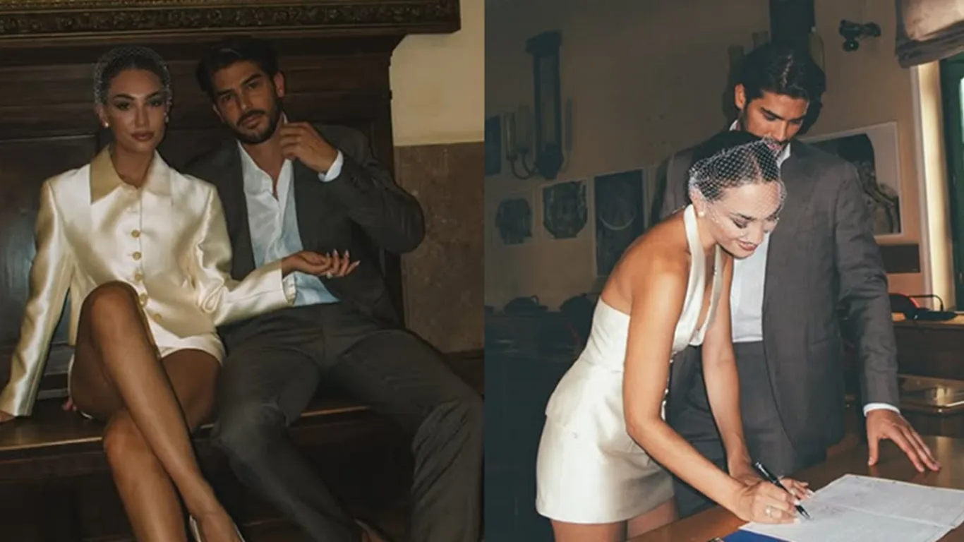 Angela ha indossato un mini abito panna, abbinato a una giacca tono su tono e a una veletta romantica tra i capelli raccolti in uno chignon basso, elegante e senza eccessi. Paolo, invece, ha optato per un completo grigio con camicia bianca, mantenendo uno stile sobrio ma raffinato. Entrambi hanno dimostrato di voler vivere questo momento con autenticità, mettendo al centro i sentimenti e la complicità costruita in sette anni di relazione.
