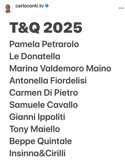 Con un semplice post su Instagram, Carlo Conti ha ufficializzato il cast della nuova edizione di Tale e Quale Show, il varietà del venerdì sera di Rai 1 che continua a conquistare il pubblico con imitazioni improbabili, trasformazioni spettacolari e momenti di puro intrattenimento.