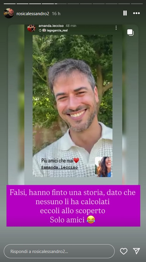 Per mettere fine ai dubbi, è stato proprio Iago Garcia a chiarire la situazione attraverso un post su Instagram. L’ex gieffino ha pubblicato uno screenshot di una videochiamata con Amanda, accompagnandolo con la frase “più amici che mai”.