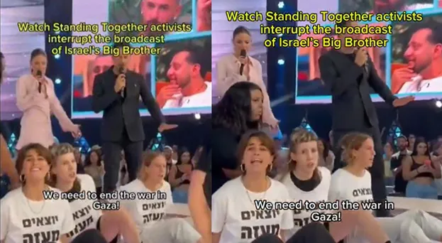 Durante la diretta Grande Fratello israeliano, quattro attivisti del movimento per la coesistenza ebraico-araba e la giustizia sociale Standing Together sono saliti senza autorizzazione sul palco per protestare contro la guerra in corso a Gaza. Indossando magliette con la scritta "Lasciare Gaza", si sono seduti e presi per mano, lanciando un forte appello per la pace.