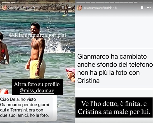 Secondo quanto riportato, Gianmarco è stato avvistato da solo in spiaggia a Terrasini, in Sicilia. Nessuna traccia, invece, di Cristina, l’ex corteggiatrice originaria di Salerno. Un dettaglio ha però attirato particolarmente l’attenzione dei fan: “Gianmarco ha cambiato sfondo sul telefono, non ha più la foto con Cristina”, ha rivelato un utente in un messaggio inviato a Deianira Marzano, nota esperta di gossip, la quale ha rincarato la dose, scrivendo nelle sue Instagram Stories: “Ve l’ho detto, è finita. Cristina sta male per lui”.