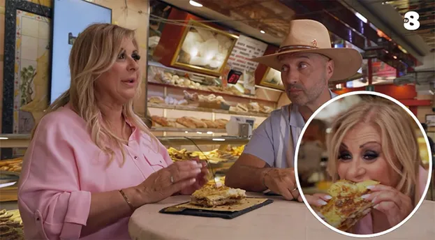 Il programma, che si propone di scovare le eccellenze gastronomiche del territorio attraverso sfide dirette tra concorrenti, ha visto la vulcanica opinionista alle prese con una giuria insolita: il compito era giudicare il miglior panino con la porchetta.
