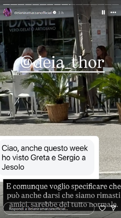 Dopo settimane di silenzio, la coppia è stata nuovamente vista insieme a Jesolo, come segnalato da una foto inviata a Deianira Marzano. La nota influencer ha però voluto sottolineare la possibilità che i due siano semplicemente rimasti amici, definendo questa eventualità “del tutto normale”.