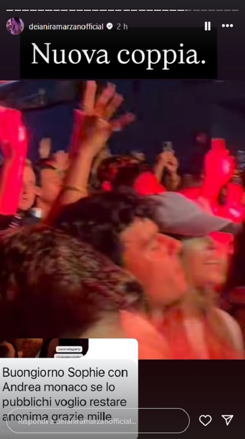 Ultimamente ha iniziato a circolare un nuovo gossip. Un utente ha inviato a Deianira Marzano, nota esperta di gossip, una foto di Sophie Codegoni in compagnia di un certo Andrea. Deianira ha commentato con un laconico “Nuova coppia”. Ma sarà davvero così o si tratta dell’ennesimo gossip che vede protagonista Sophie?
