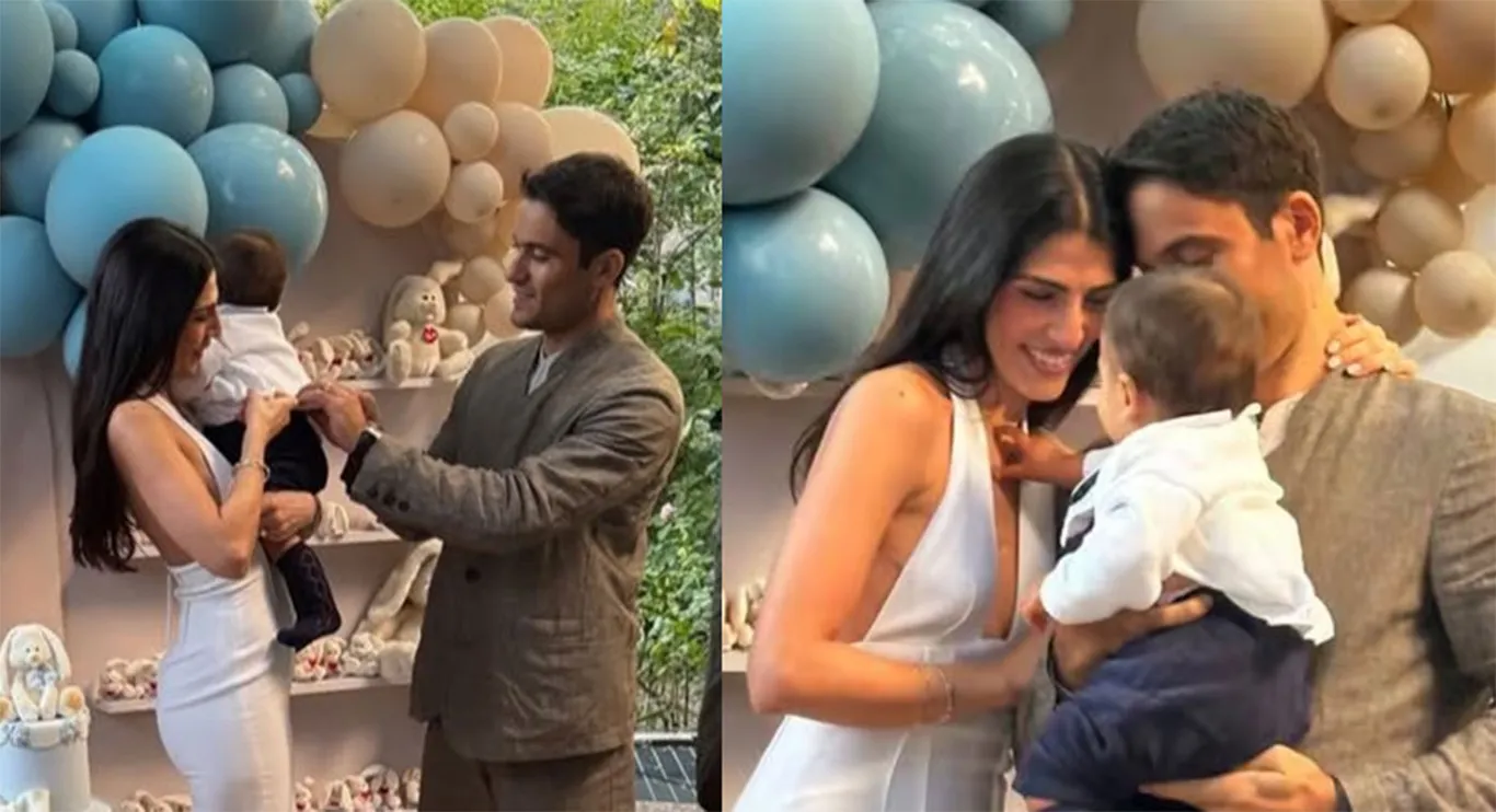 Il party è stato allestito con una cura minuziosa per il tema scelto: gli orsetti. Maxi pupazzi posizionati sul pavimento, una torta a tre piani decorata con dolcissimi cagnolini bianchi e piccole bomboniere peluche hanno reso la location un vero e proprio mondo incantato. Una cascata di palloncini azzurri e panna ha completato la scenografia, mentre una “parete attrezzata” con la scritta “Il battesimo di Kian” è diventata il punto di ritrovo per scatti e abbracci tra genitori, ospiti e il piccolo protagonista.