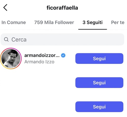 A far parlare i fan non è stata solo la presunta relazione, ma anche un comportamento particolare di Raffaella Fico sul suo profilo Instagram. La showgirl ha eliminato tutti i contenuti pubblicati in precedenza e ha smesso di seguire quasi tutti gli account, tranne tre: due appartenenti a sua figlia Pia, nata dalla relazione con Balotelli, e uno proprio a Armando Izzo. Questo tipo di gesto sui social è spesso interpretato come l’anticamera di un annuncio importante, alimentando le voci sulla nuova coppia.