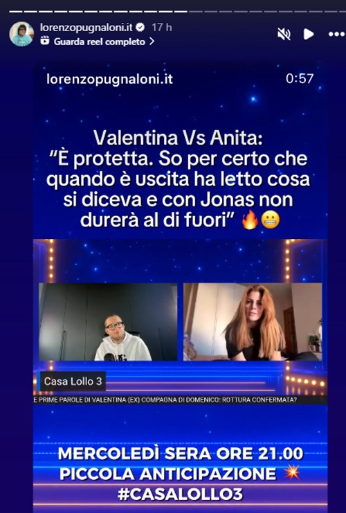 Intanto, nella giornata di ieri, Valentina è tornata a parlare. Ma questa volta non solo della rottura con Domenico, ma anche di Anita Mazzotta e della sua storia con Jonas Pepe. Ospite di Lorenzo Pugnaloni a Casa Lollo, Valentina ha dichiarato: “È protetta. So per certo che quando è uscita ha letto cosa si diceva e con Jonas non durerà al di fuori della Casa”.