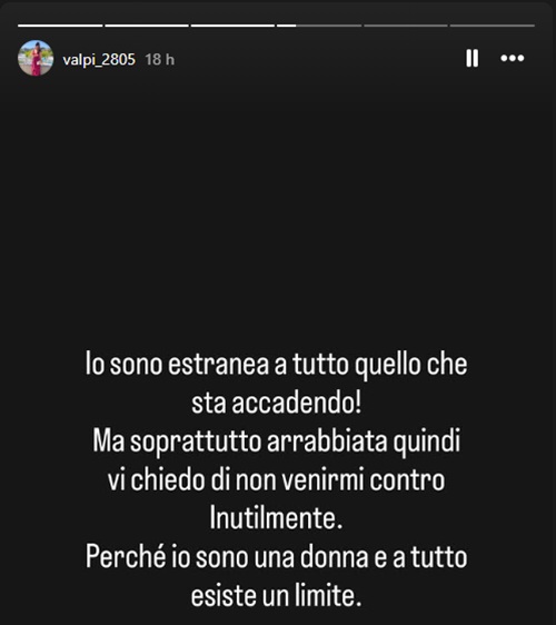 Le parole di Domenico non sono state accolte positivamente da Valentina Piscopo, che ha espresso il suo disappunto sui social. In un post su Instagram, la compagna (o ex) ha scritto: “Lo sono estranea a tutto quello che sta accadendo! Ma soprattutto arrabbiata, quindi vi chiedo di non venirmi contro inutilmente. Perché io sono una donna e a tutto esiste un limite”.