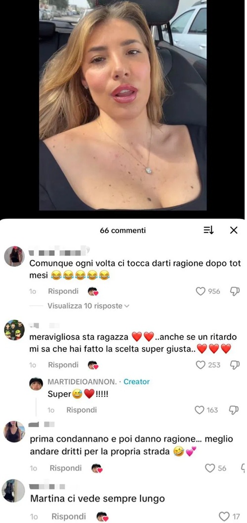 Alcuni utenti hanno lasciato messaggi piuttosto critici nei confronti del ragazzo campano. Commenti ai quali Martina non ha risposto direttamente con parole, ma con una serie di like che, secondo molti fan, lascerebbero ben poco spazio ai fraintendimenti.