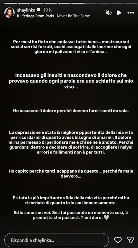 Chiudendo il post, Shaila ha voluto rivolgere un messaggio a chi sta affrontando momenti difficili: “Se stai passando un momento così, ti prometto che passerà. Tieni duro”.