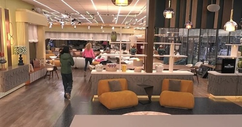 La zona giorno mostra subito un cambio di stile rispetto al passato: addio ai colori sgargianti e ai divanetti dai toni accesi, sostituiti da arredi più soft con tonalità calde e neutre come beige e marrone, accompagnate da qualche tocco più vivace, come il giallo senape di alcune poltroncine. L’atmosfera complessiva è più rilassante e accogliente, quasi come un vero soggiorno di casa.