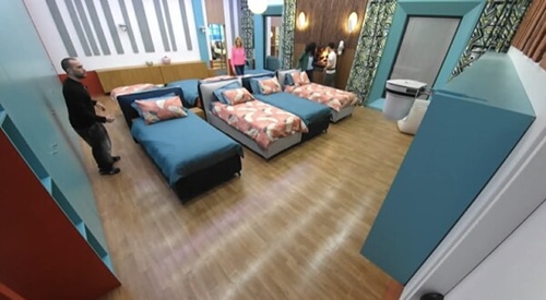 Per quanto riguarda la zona notte, vige ancora massimo riserbo. Alcune immagini mostrano letti singoli con arredi in tonalità di blu e azzurro, che si abbinano perfettamente al parquet. Anche qui, l’obiettivo è creare un ambiente che inviti al relax per i concorrenti.