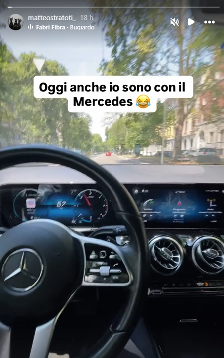 Nel post, Matteo ha scritto: "Oggi anche io sono con il Mercedes ????"