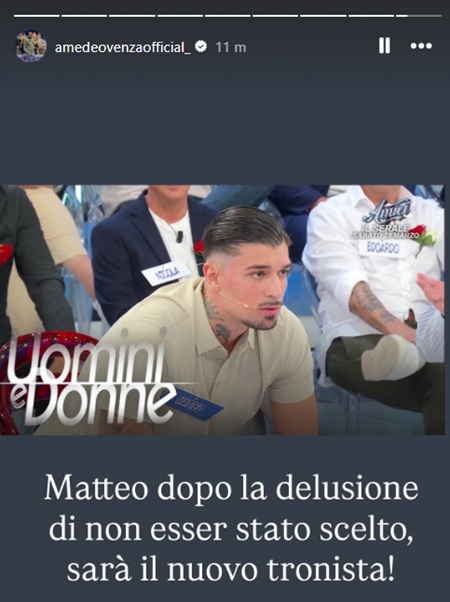 Matteo Stratoti sarà il nuovo tronista di Uomini e Donne. L’annuncio arriva da Amedeo Venza, noto esperto di gossip, attraverso una storia su Instagram.