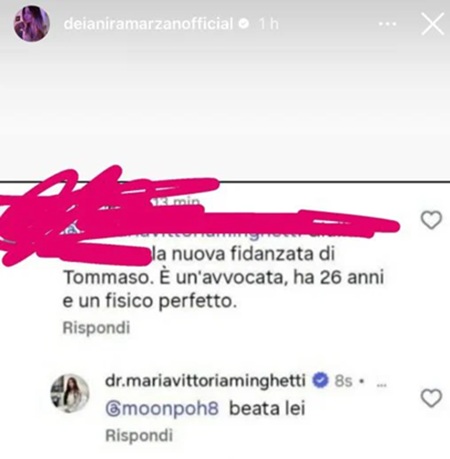 Di fronte alle indiscrezioni sulla nuova presunta relazione dell’ex compagno, Mariavittoria Minghetti avrebbe reagito con ironia. La sua risposta, breve ma pungente, è diventata subito virale tra gli utenti: “Beata lei!”.