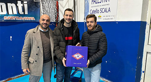 A Salvatore Filosa, imprenditore, fondatore della cooperativa sociale L’impronta, sponsor della Vesuvio Oplonti e title sponsor della selezione di serie D maschile, il presidente Cirillo ha consegnato una maglia autografata per suggellare il binomio sport e sociale (foto sotto).