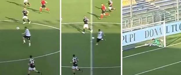 Francesco Totti e il gol da centrocampo. L'ex numero 10 della Roma dà spettacolo nel match organizzato da Operazione Nostalgia allo stadio Tardini di Parma.