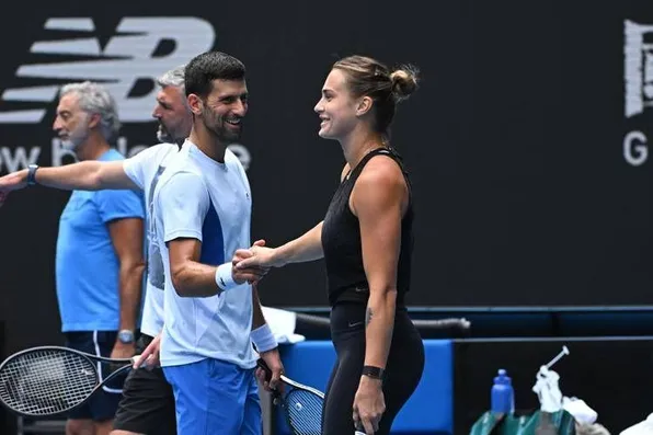 "Mi chiedono di cosa abbiamo parlato dopo il nostro allenamento di un'ora. Ma prima di tutto, voglio farti una domanda. Cosa pensi degli scambi con me? Come vedi il mio livello?", la domanda della bielorussa. "Credo tu sia davvero una giocatrice di talento", esordisce Djokovic. "Ottimi colpi, buona tecnica ma... posso essere sincero? Ti manca un po' di intensità in campo, non hai abbastanza intensità. Devi aumentarla un po', è tutto troppo piatto", dice Djokovic sfottendo la collega tra le risate della sala stampa. "Prima questo tizio era il mio giocatore preferito... Non più ora", chiosa Sabalenka.