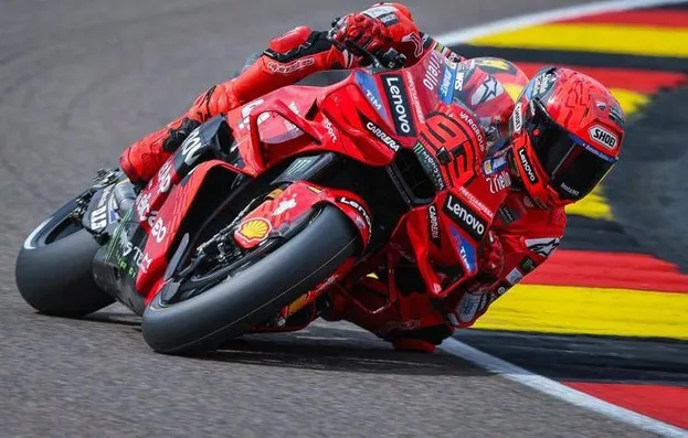 Ancora una pole position per Marc Marquez sotto la pioggia del Sachsenring. Il pilota spagnolo della Ducati, leader della classifica Piloti di MotoGp, ha fatto segnare il miglior tempo nelle qualifiche di oggi, sabato 12 luglio, e partirà quindi dalla prima posizione nel Gp di Germania, undicesimo appuntamento del Mondiale. Marquez ha chiuso con il tempo di 1'27"811 davanti a Johann Zarco (Honda LCR), a 0'151 di distanza, e Marco Bezzecchi (Aprilia), che dopo il bel secondo posto ad Assen si ritrova a 0'421 di distacco e partirà quindi terzo.