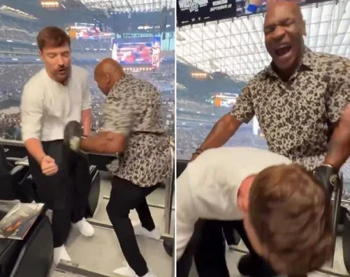 Mike Tyson mette k.o. Mr Beast con un gancio sinistro. Lo youtuber più famoso del mondo con oltre 435 milioni di follower - il 27enne James Stephen Donaldson - è stato protagonista di un siparietto 'potente e doloroso' con l'ex pugile 59enne prima del match tra Canelo Alvarez e Terence Crawford all'Allegiant Stadium di Las Vegas.