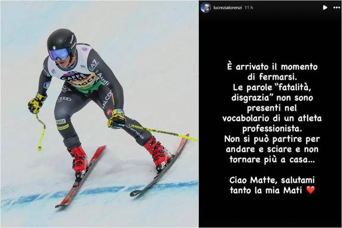 "È arrivato il momento di fermarsi. Le parole 'fatalità, disgrazia' non sono presenti nel vocabolario di un'atleta professionista", ha scritto Lucrezia Lorenzi in una storia Instagram, "non si può partire per andare a asciare e non tornare più a casa... Ciao Matte, salutami tanto la mia Mati".