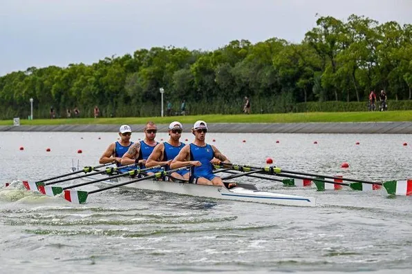A Shanghai, a distanza di sette anni dall’ultimo successo, il quattro di coppia maschile si laurea campione del mondo. E’ il bis per Luca Rambaldi, Andrea Panizza e Giacomo Gentili, con Luca Chiumento al posto di Filippo Mondelli, prodiere a Plovdiv nel 2018 e scomparso nel 2021 a causa di un osteosarcoma. Gli azzurri, con la sua bandiera tricolore in mano, hanno dedicato la vittoria proprio all’amico “Pippo”. Italia, già vincitrice della batteria domenica e della semifinale martedì, prima al traguardo con quasi due secondi di margine sulla Gran Bretagna e tre secondi e ventisei centesimi sulla Polonia.